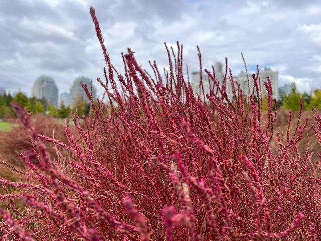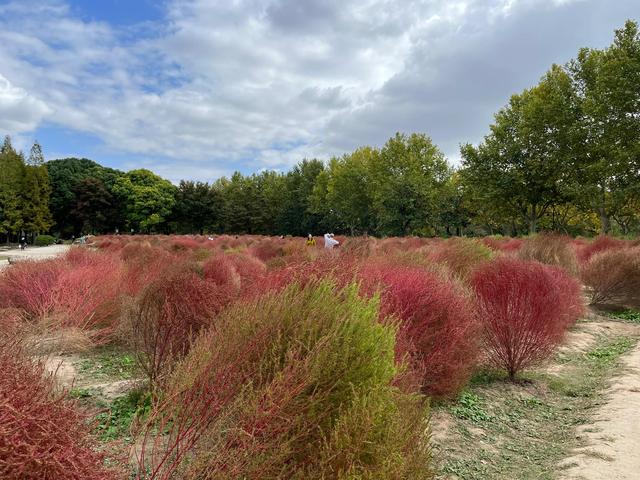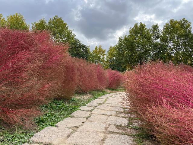 地肤草由绿变红,有观赏小道,比被围起来的粉黛乱子草亲民。