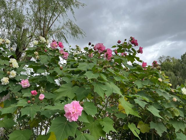 木芙蓉,又名芙蓉花、拒霜花、木莲、地芙蓉、三变花、九头花、铁箍散、转观花、清凉膏等,名字之多可见种植广泛,用途之大。