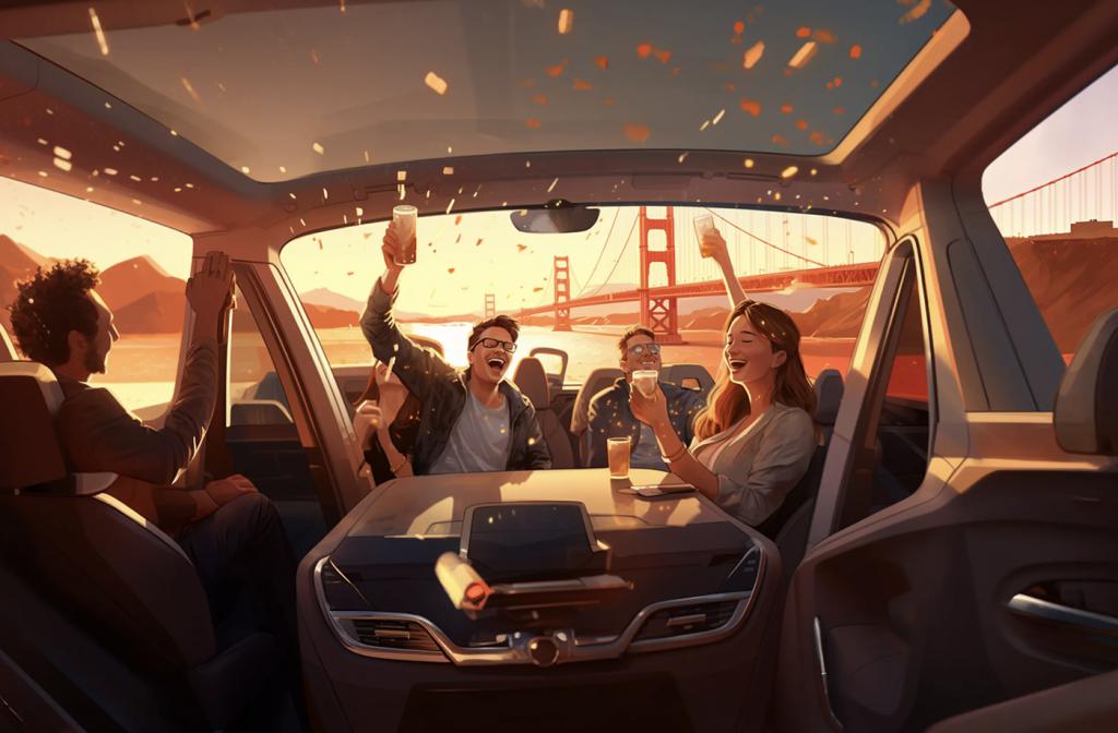 乘客在自动驾驶出租车中狂欢,制作:Midjourney,来源:San Francisco Standard
