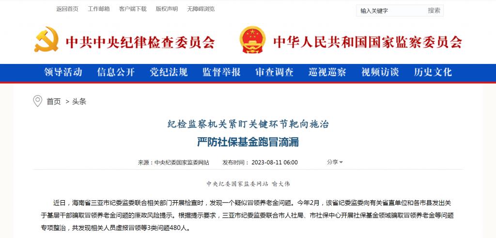8 月 11 日,中央纪委国家监委网站刊发题为《纪检监察机关紧盯关键环节靶向施治,严防社保基金跑冒滴漏》一文。文章提到多起套取医保基金的违纪违法案例。