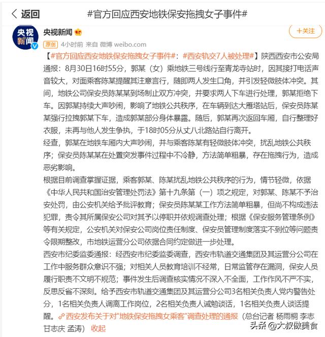 西安地铁事件后续报道(西安地铁事件官方通报已出)