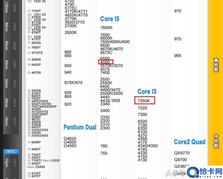 无意中在网上看到一张CPU天梯的性能图,i3-7350k的性能竟然比i5-4590还强,但我看了半天,还是决定购买i5-4590,因为我手里有Z97主板了,可还没有Z270主板。