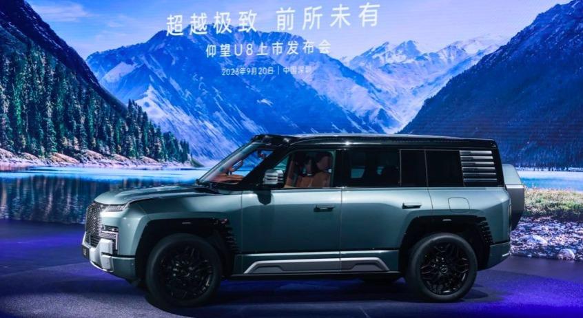 作为仰望品牌的首款量产车型,仰望 U8 定位为百万级新能源硬派越野。据悉,新车最大功率为 880kW,零百加速最快 3.6 秒,具备全地形原地掉头、爆胎稳行和应急浮水等功能。" 仰望 U8 豪华版搭载插电式混合动力系统,配合‘易四方’技术平台,CLTC 综合续航里程达 1000 公里。" 胡晓庆表示。