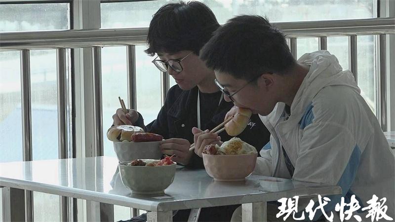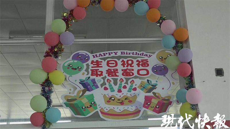 现代快报记者在现场看到,学校为了让当天过生日的同学吃到热乎的 " 长寿面 ",专门开设了一个生日面的领取窗口,厨师现场专门为过生日的同学下碗面,面条上盖有排骨、烤肠等美味菜肴,还有在家里过生日必吃的荷包蛋。