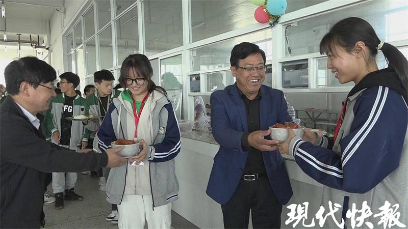 现代快报讯(记者 姜振军 通讯员 陈冬平)在乡村学校里,有不少学生住校,不在父母身边。不少学生的父母都在外地打工,即便是孩子过生日,他们也很难赶回来陪伴。现代快报记者了解到,在盐城市阜宁县一所乡村中学,只要有过生日的同学,当天中午都会收到一碗盖有荷包蛋的 " 长寿面 " 和学校的祝福。