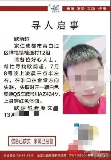 成都青白江男子欧炳超今年7月神秘失踪,至今杳无音信