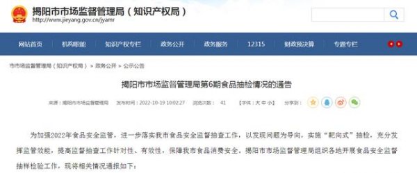 中国质量新闻网讯 近日,广东省揭阳市市场监管局发布第6期食品抽检情况。本期抽检酒类64批次,未检出不合格样品。