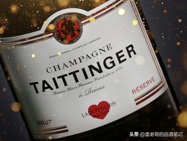 醉鹅娘的第一款联名作品选择的就是泰亭哲香槟,酒标上的红色爱心标识非常醒目。