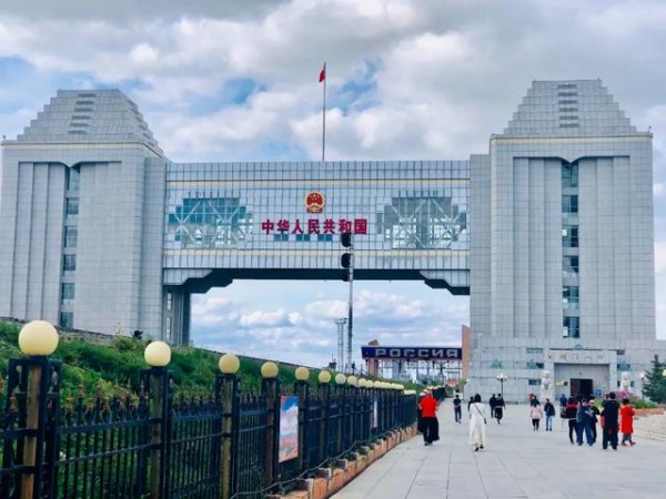 现在我们看到的这座国门是2008年建成的第五代国门,目前是中国陆路口岸最大的国门,非常雄伟。国门下方有两条宽轨和一条准轨穿过与俄罗斯接轨,从中国出口到欧洲的货物很大一部分就是通过这条铁路运输过去的。