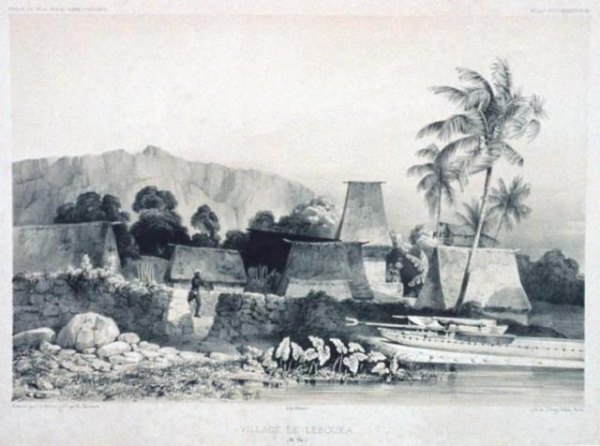 这是19世纪旅行者描绘的美拉尼西亚的斐济,看得出来,当时的美拉尼西亚还保持着比较原始的风貌
