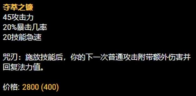 之所以巨魔依赖“夺萃之镰”这件装备,最重要的是需要这件装备提供的“咒刃”效果。大家会发现,一般来说现在主流巨魔的玩法在装备上都会考虑神话-神圣分离者,通过其“咒刃”效果来打额外的伤害,但是一般情况下,出了这件神话以后其他的神话装备的增益效果体现不出来,性价比就低很多了,而且巨魔的站位一般都是站在前端,所以出日炎圣盾不仅仅可以增加巨魔的坦度还可以增加一定的贴身伤害,再配合吸蓝刀的“咒刃”效果可以将巨魔的前场能力变得更加的能扛能打,巨魔的整体能力也会强很多,不管是对线1v1还是团战阶段的能力都很突出、很强大。