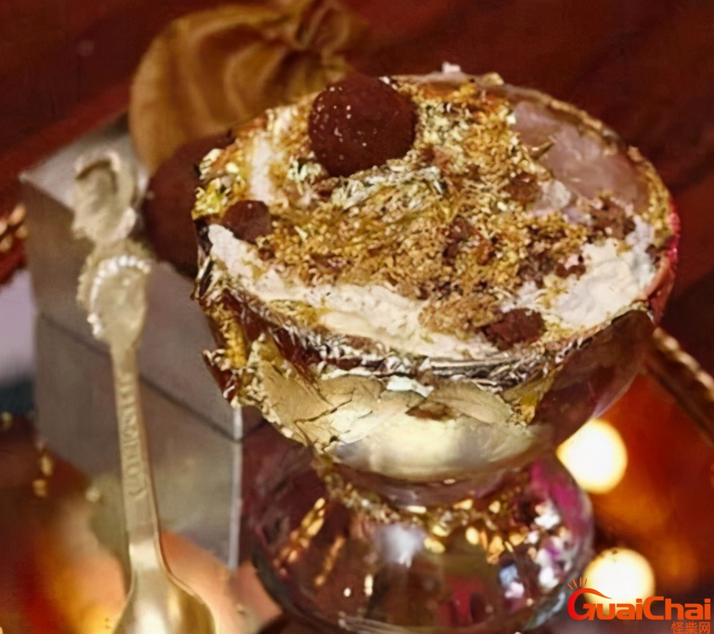 这款冰淇淋是langham酒店的招牌甜品,不仅在制作原料上非常珍贵,而且附带四克拉的金粉,以及用特质的水晶杯盛放,无论是食材的质感还是冰淇淋的配饰,那都是非常的奢华至极。