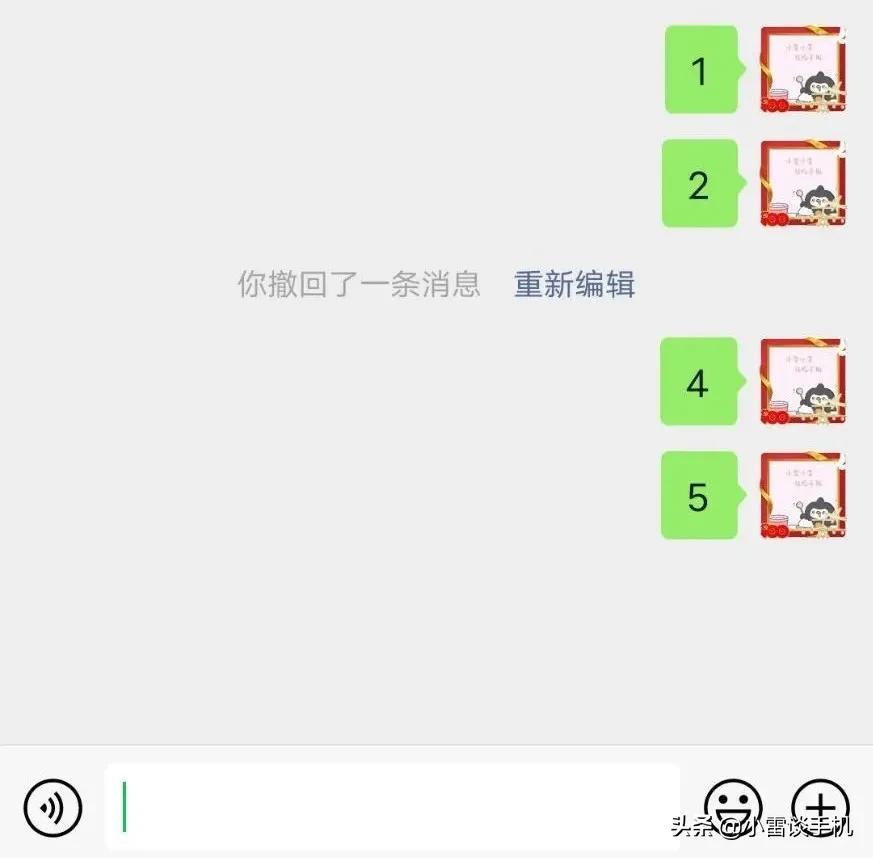 OK,下面做个试验。先我用另一部手机微信对这部设置好的手机微信发送了1,2,3,4,5条消息,并且撤回了其中的第3条。