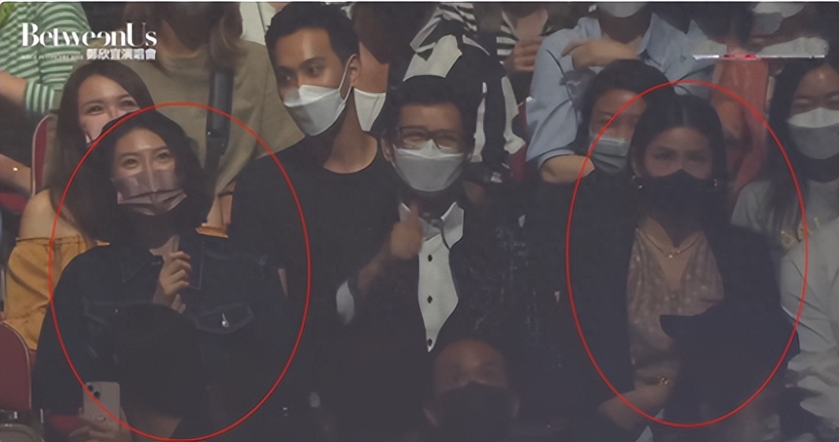 两位女儿发型不同,着装风格也不一样,大女儿长得像妈妈,小女儿更像爸爸一些,父女三人坐在嘉宾席上支持郑欣宜红馆开演唱会,可见官晶华的女儿与沈殿霞的女儿并无过节,还关系挺不错呢!