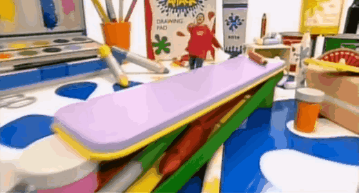 《艺术创想》总是教我们用身边普通的材料,或者是废旧物品,制作出让我们惊讶的东西。我依稀记得,尼尔叔叔总是会掏出废报纸,白乳胶,广告颜料就可以制作出一切的东西;随便画了几笔,或者涂抹了几下,告诉我们:“仔细看,不要担心。”然后就画出了“亿点点”的细节!虽然画不出来,但在尼尔叔叔的鼓励下,也总相信自己有一天能画得出来