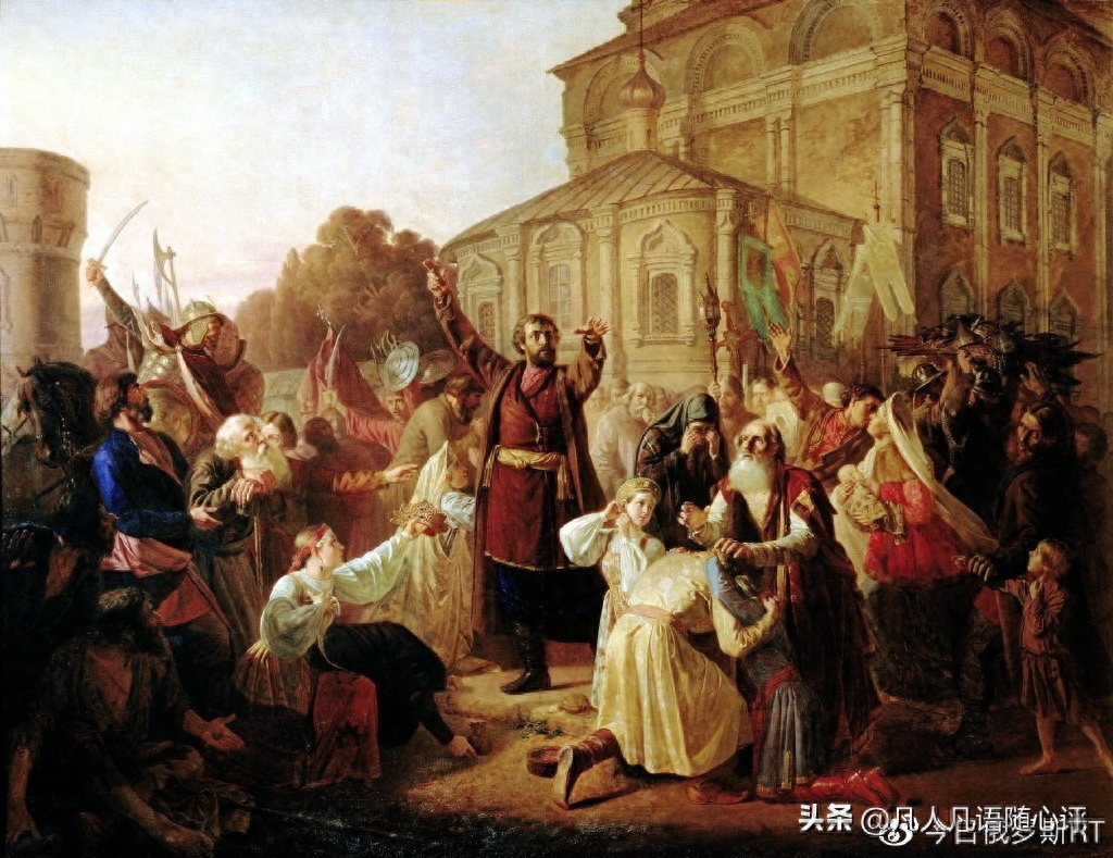 米哈伊尔·佩斯科夫《1611年米宁对下诺夫哥罗德人民的呼吁》(1861年)丨图片来源:萨马拉美术馆
