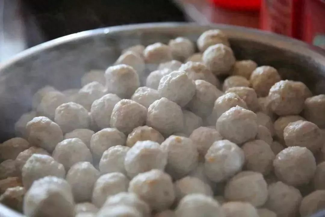 把鲮鱼剃骨取肉之后,要用两根铁棒反复敲打6个小时以上,让鱼肉中的胶质出来,然后再攒成鱼丸,这样做起来的鱼丸胶质多、韧性足,扔在地上可以像乒乓球那样一弹数尺高,吃起来相当有嚼劲!