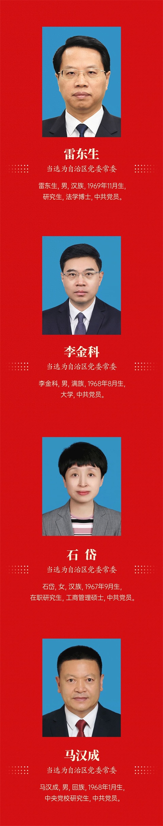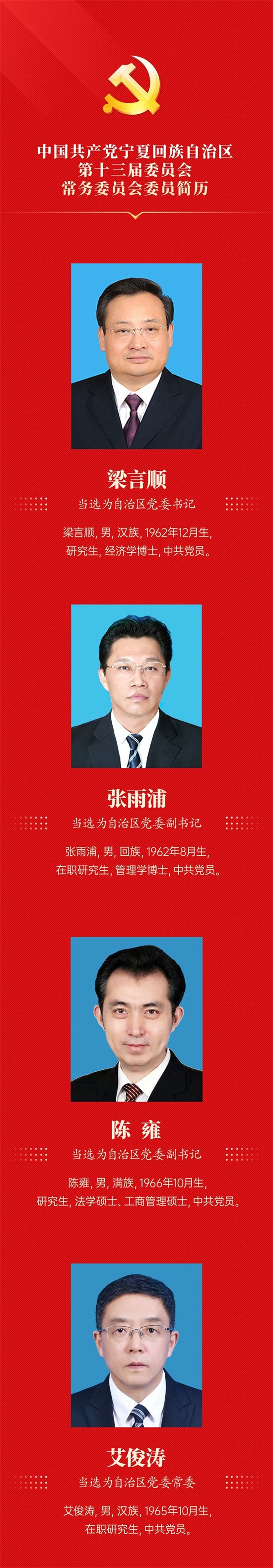 宁夏选举产生自治区第十三届党委常委班子(附名单简历)