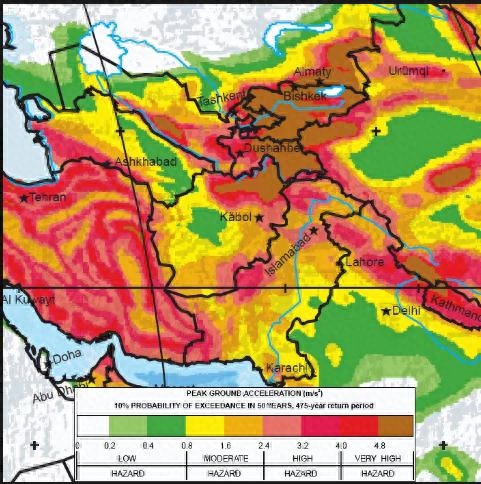 中亚是世界上另一个主要的地震区,地震最活跃的区域集中在黑海东岸穿过伊朗延伸至里海南岸的区域。