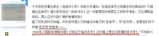 让我们先从网上流传的文章说起,可以清楚的看到,转发的文章中清楚的写到“狂欢节”的由来是1898年八国联军侵略中国!打到了辽宁省丹东市!这天晚上是他们所谓的狂欢节。”