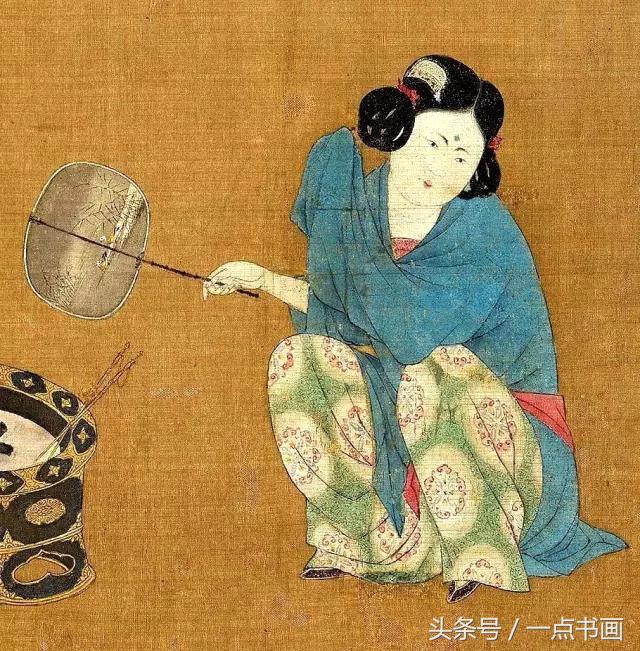 宋徽宗摹《张萱捣练图》,现藏美国波士顿美术博物馆。此图描绘了唐代城市妇女在捣练、络线、熨平、缝制劳动操作时的情景。