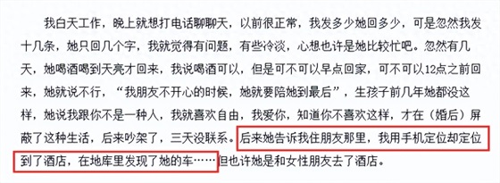 ——某天晚上,妻子说和女性朋友在一起,可他通过定位发现妻子在一家酒店。