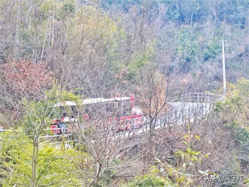 搭乘复古火车的观光车沿着景区内平坦的公路深入到密集的深潭瀑布附近之后,便可以下车沿着栈道继续欣赏,奔腾不息的瀑布与清澈见底的潭水,以及映衬在潭水之上的山林,仿佛构成了一幅美丽的油彩画卷,既美不胜收,又让人爱不释手。