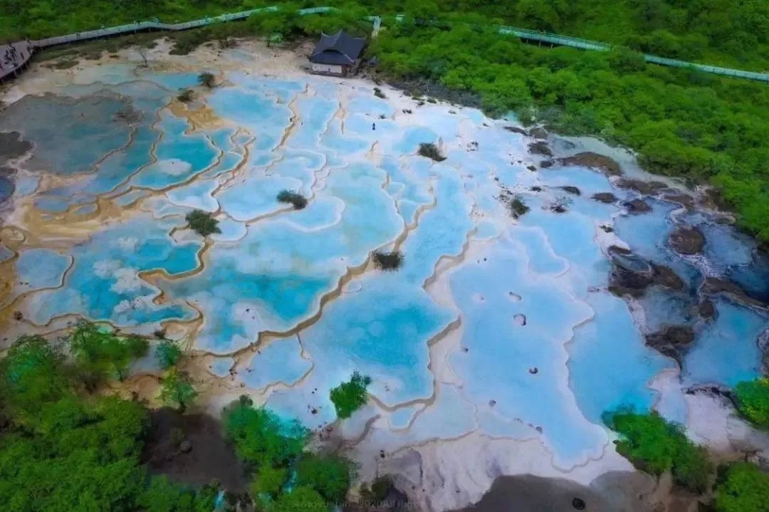 黄龙景区作为世界自然遗产地,其独特的高寒喀斯特地貌美轮美奂,蜚声中外。其中彩池数更是多达3400余个,形状不一、特色鲜明,宛如艺术家创作而成的流动画。