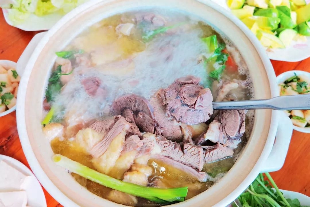 以藏羌高原地区特产的牦牛肉为主菜,佐以姜、蒜、花椒、八角、草果等调味料慢火炖制而成,口感嫩滑爽劲,营养丰富,老少皆宜。