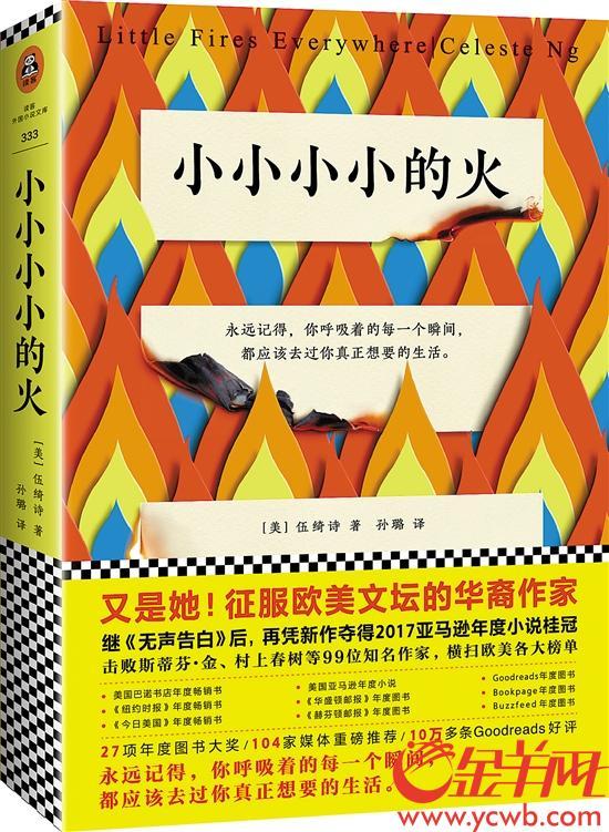 新作《小小小小的火》承袭了伍绮诗对家庭关系的深刻独特解读,用细致入微的笔触讲述了一个复杂的人生故事:小说背景设置在一个典型的成功人士社区,人人信奉规则是秩序之母,一切都经过完美规划——从男人的头发长度,到家家户户的外墙颜色,都有严格指标。直到一对野蛮生长的艺术家母女到来,整个社区的优雅都震动了,最后,一把小小小小的火,烧掉了主人公家的房子……小说探讨了身份认同和人生选择,展现了“自由派”活法和“规矩派”活法之间的冲突,剖析了美国社会的生存状态。