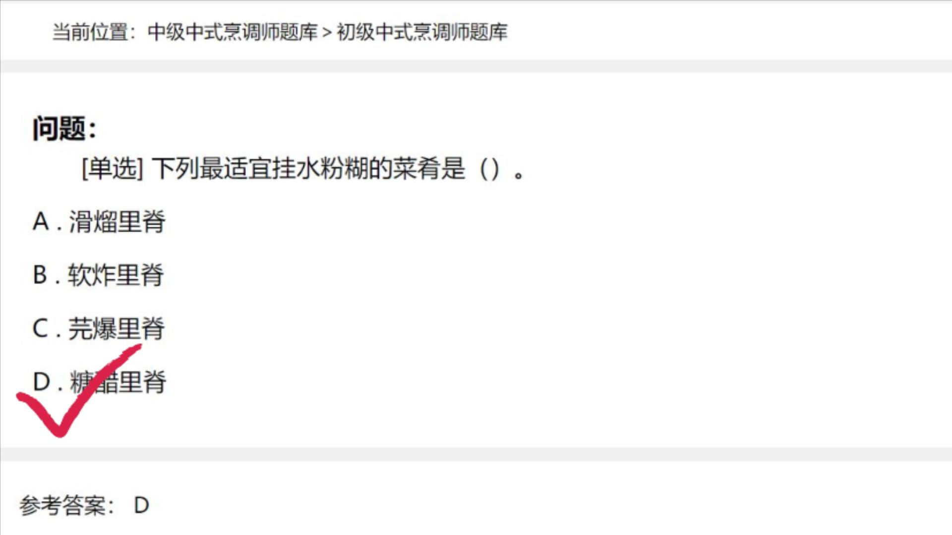 给您看一个厨师考试的题目标准答案,正确答案就是糖醋里脊。