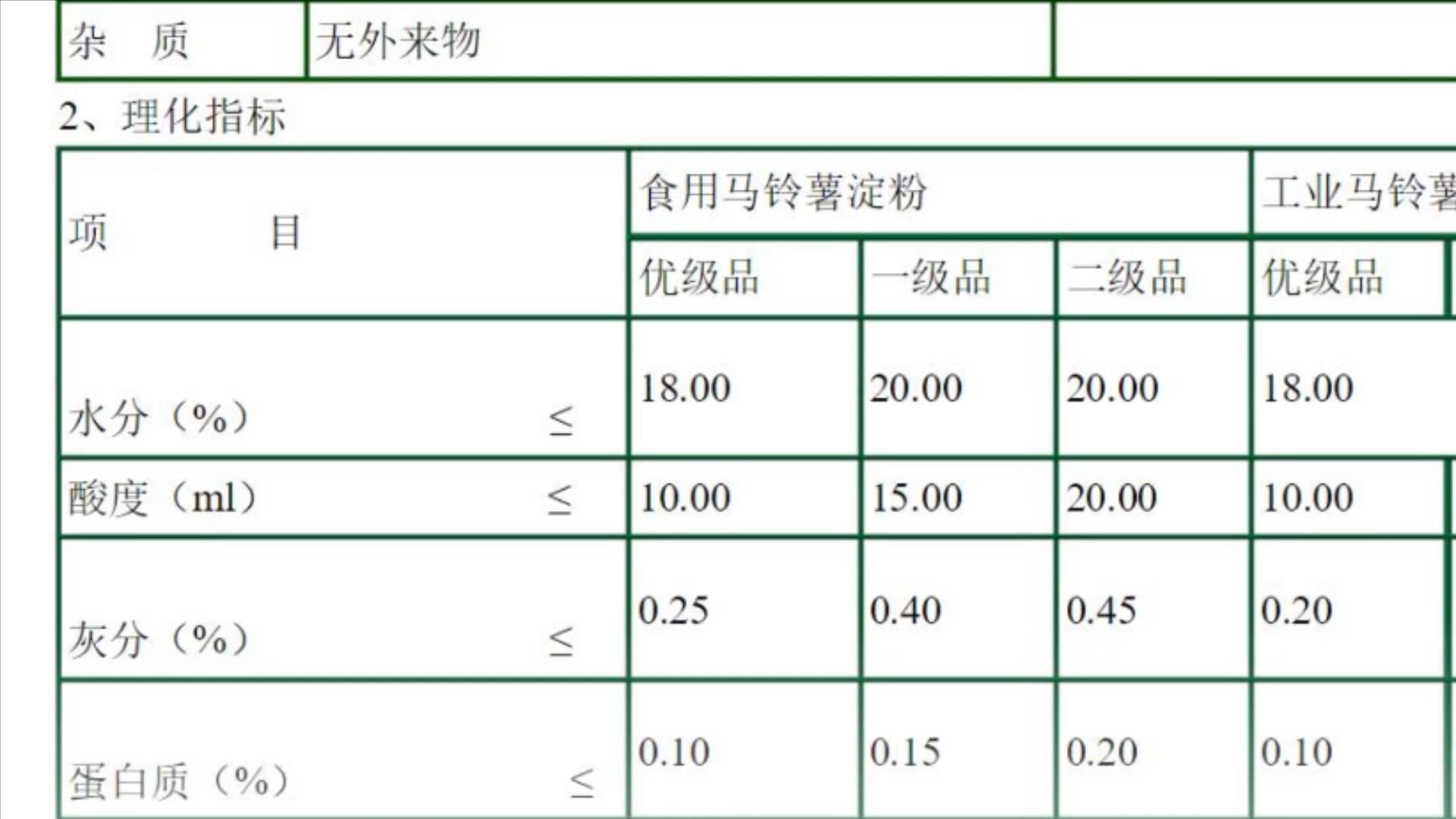 根据食用马铃薯淀粉标准,以马铃薯为原料,经湿磨法加工制成的马铃薯淀粉分为优级、一级和二级,三个等级。含水量的不同,决定了马铃薯淀粉的等级。而且,一旦您打开了包装,淀粉也会持续吸收空气中的水分。所以其实,每一次淀粉的含水量不同,水的用量就需要灵活掌握,不过总体差别不大。