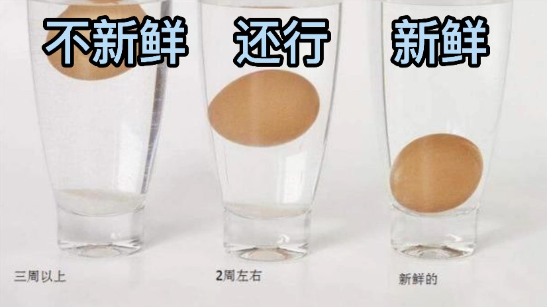 一个干净大碗中,加入2个鸡蛋清,然后,用筷子不停的打发。鸡蛋一定要新鲜,否则打发效果不好。大家可以用一个水杯,来判断鸡蛋新鲜度,具体方法看这张图。越新鲜的鸡蛋越沉底,越不新鲜越浮起来。
