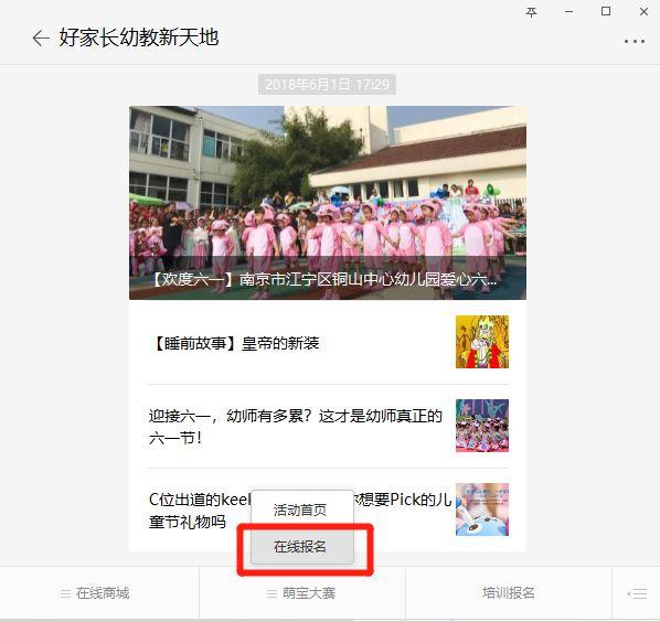 点击下方萌宝大赛下的“在线报名”菜单