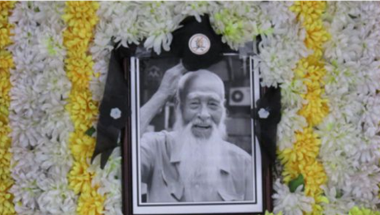 房内墙壁上还挂着老人一幅放大的照片,照片上,老人面容慈祥,精神矍铄,胡子雪白,开心地笑着。