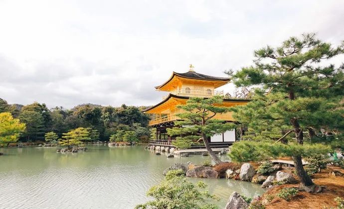 金阁寺建于1379年,原为足利义满将军的山庄,后改为禅寺。高调华丽的禅寺在阳光下熠熠生辉,与前方的镜湖池交相辉映,成为京都最经典的风貌之一。