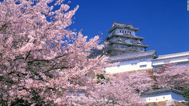 城堡外形好似一只高雅的白鹭,所以又称白鹭城。雪白的城堡,在蓝天、白云、红叶、碧树的映衬下,美得格外耀眼。