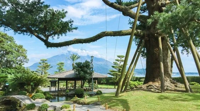 仙岩园建于1658年,又名矶庭园。这里的庭院布局很是巧妙,它以不远处的樱岛火山为假山,以锦江湾为池塘,还有各式神殿,以及竹林,借景构造了一处壮观秀美的日式庭院,因而有着天下名园的美誉。