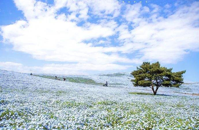 日立海滨公园每个季节都有亮点,春天属于郁金香和水仙花,夏日属于粉蝶花和玫瑰,秋天则是红的热烈的扫帚草,粉蝶开放的时候最为梦幻,蓝色的天、海、花连成一片,宛如梦境。