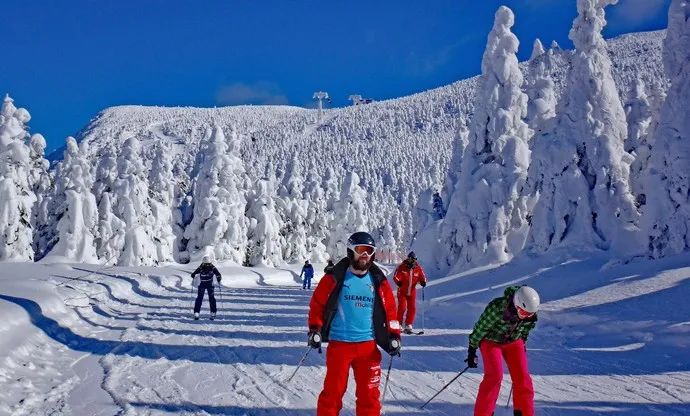 位于山形和宫城交界处的藏王山是冬季里看树冰、滑雪的胜地,在冬季最寒冷的时候,季风就将飘落在树上的皑皑白雪雕刻成各种不同的形状,冬雪之美尽在眼前。