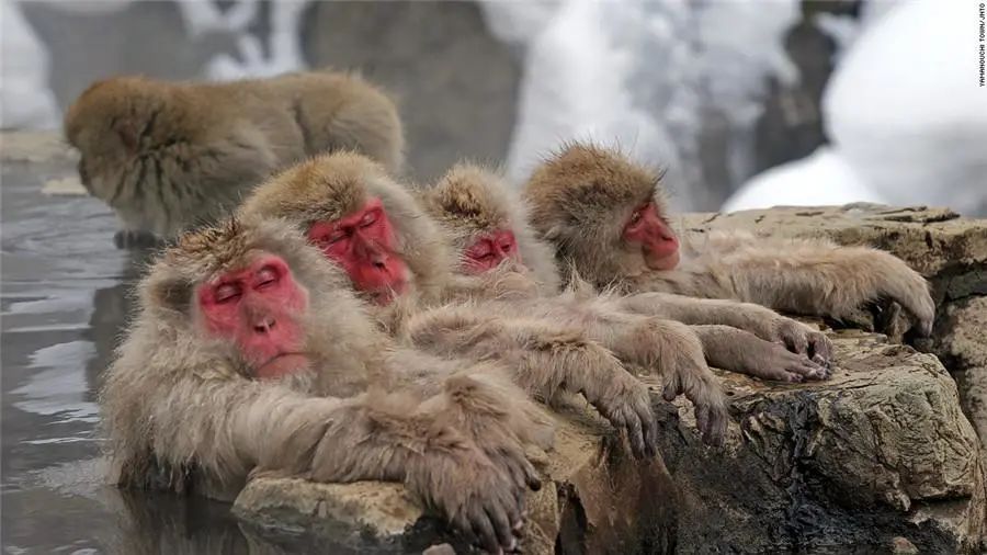长野的山林间居住着很多雪猴,很多人来这里游玩,是为了一瞥雪猴泡汤的风采。猴子们会旁若无人的在人群中散步,越过层层阻碍进入温暖的池里泡澡。