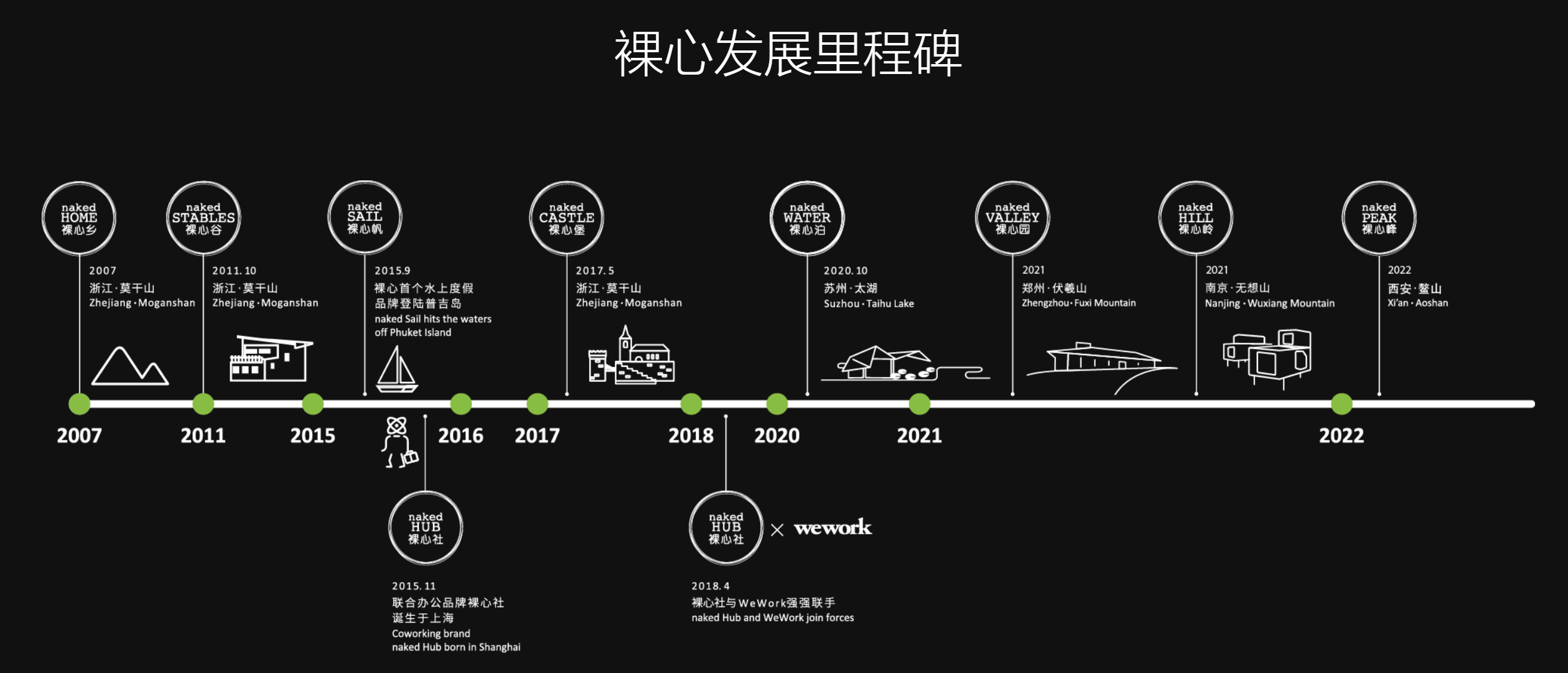 裸心集团成立于 2007 年,创始人是来自南非的连续创业者高天成,致力于成为快活裸心,返璞归真的生活方式引领者,让人们得以从裸心集团旗下的高端度假村,共享办公工作空间,健康生活探索等各个领域, 感受裸心不同一般的的清新、乐活、绿色、精彩体验。