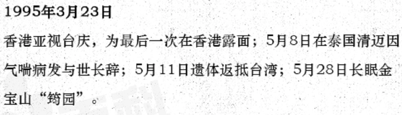 邓丽君就这样被耽误了最佳的治疗时间,最终因抢救无效死亡。