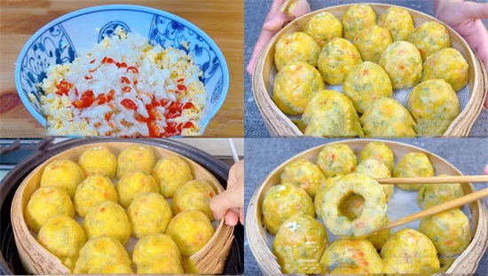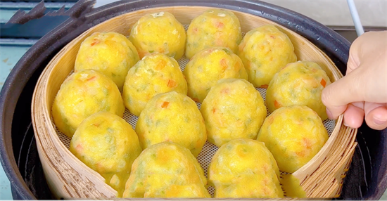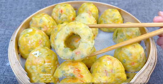 7、把弄好的团子放进蒸锅里面,大火烧开,再转小火蒸熟 蒸熟后取出 美味好吃的苦瓜蔬菜丸子就做好了。