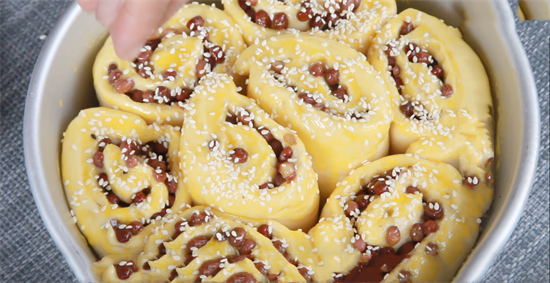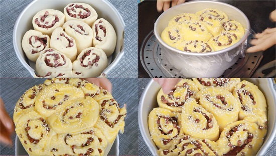 7、全部弄好之后再放进蒸锅里面,大火烧开,再转中火给蒸40分钟左右,蒸熟关火 再继续焖5分钟左右 焖好取出 美味好吃的红豆面包就做好了。