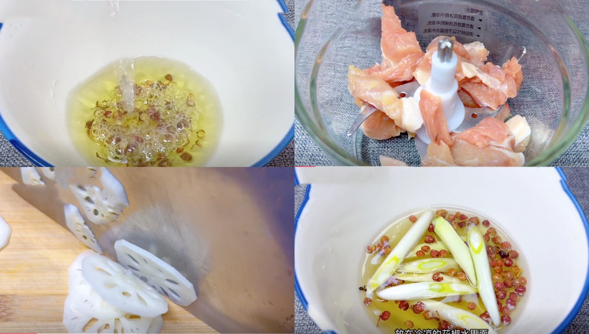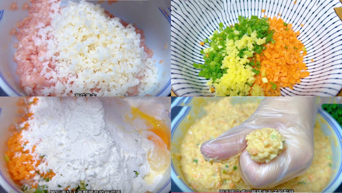 所需食材:莲藕 肉 葱姜 胡萝卜 花椒 淀粉 鸡蛋