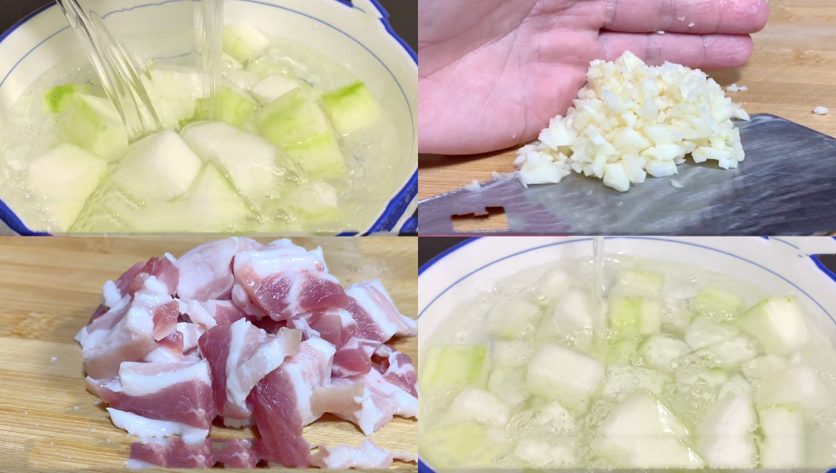 所需食材:冬瓜 五花肉 葱姜蒜 淀粉