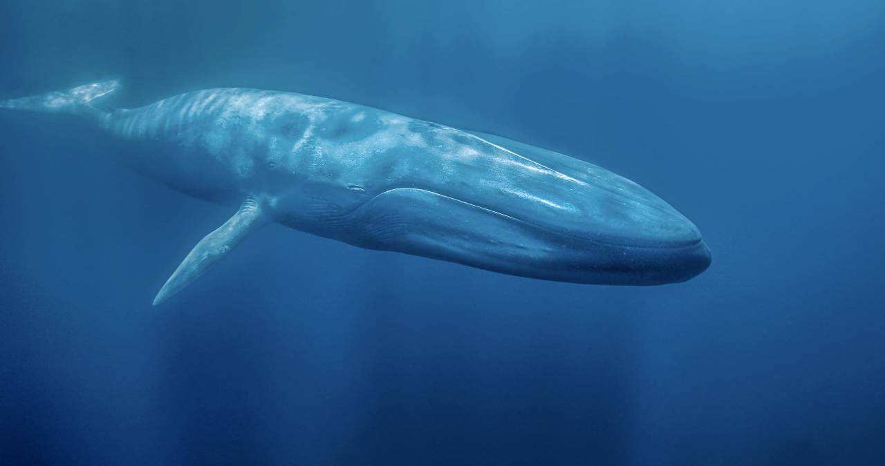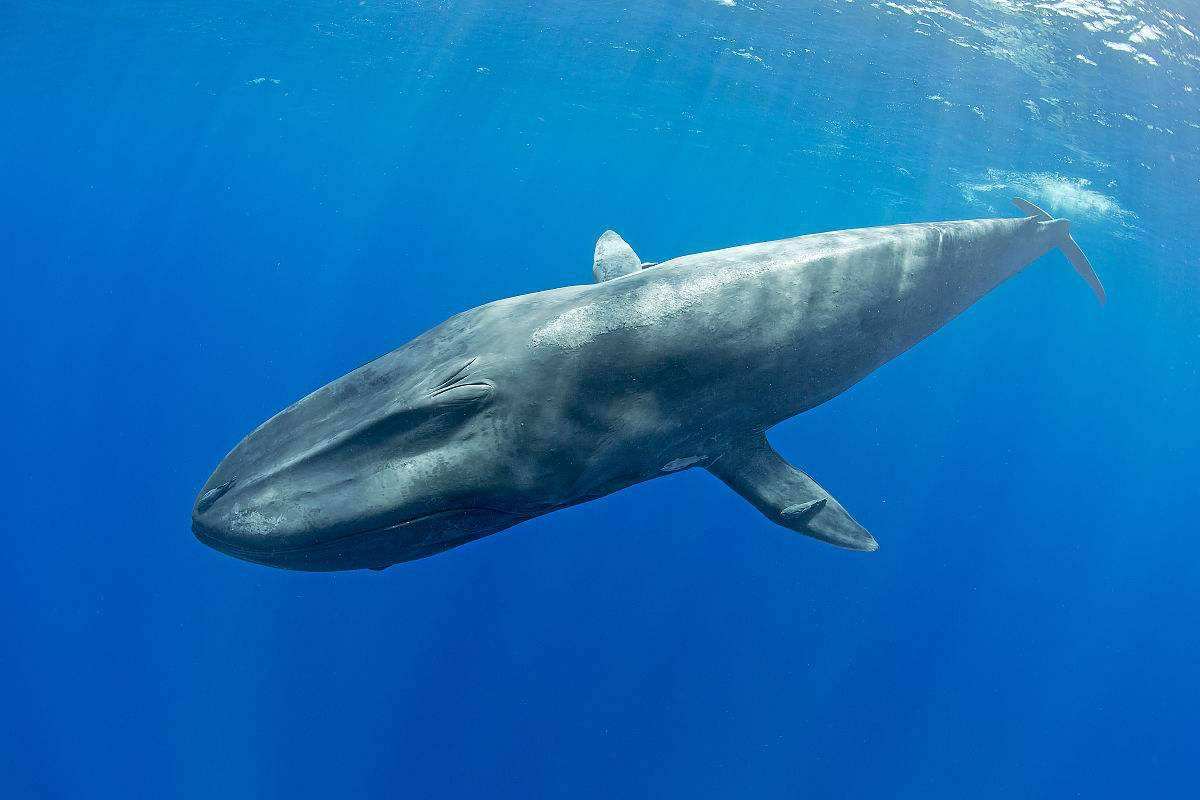 所以它是当今世界上已知的最大的哺乳动物,它的背部在阳光底下时呈现青灰色,但一旦进入深海中,这种青灰色就会变淡一点。
