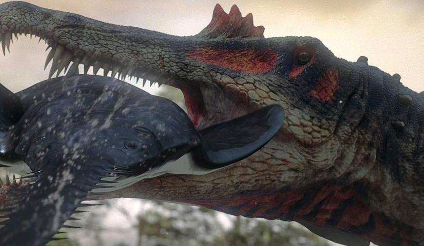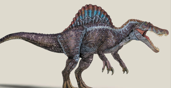 在白垩纪,有一个比霸王龙的个头大得多的恐龙,但它却不像霸王龙那样凶猛,它就是—棘龙(又叫棘背龙)。