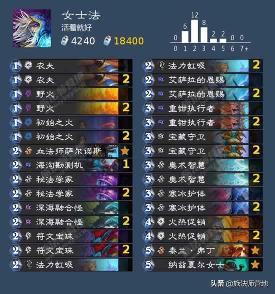 艾萨拉的神像,使用1张损毁神像造成70点伤害。参考元气骑,多带点大怪就好了,标准的娜迦巨人自然最合适不过了,探底到它只需要4怪就可以完成成就了。带上费林是为了稳定有大怪可以探底。芬利可以在你组件没上手大哥射手时拯救你,最左边3卡就是芬利用后的沉底卡,有个纳迦巨人就稳了。